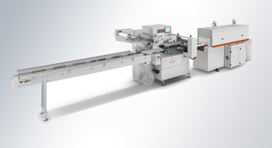 全自动热收缩包装机(全封闭式)制药、食品、饮料、文具、印刷品、化妆品、礼品、电子产品、玩具、汽车配件、餐具等产品的单体或集体包装