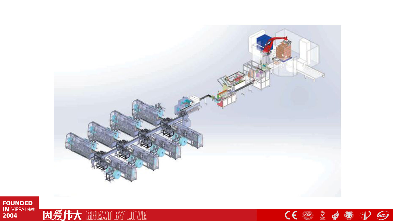 2004年开始专注包装生产线设备的研发制造,至今,全球已运行800余条伟牌®湿巾面膜包装生产线。